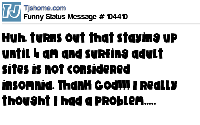 X is Huh, turns out that staying up until 4 am and surfing adult sites is not considered insomnia. Thank God!!! I really thought I had a problem…..