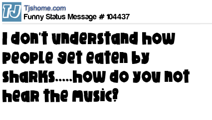 - # 156598 I don't get how people get eaten by sharks....I mean how do they not hear the music?