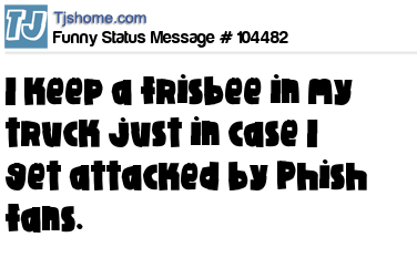 X is I keep a frisbee in my truck just in case I get attacked by Phish fans.