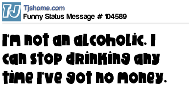 - # 104470 I'm not an alcoholic. I can stop drinking any time I've got no money.
