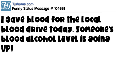 X I gave blood for the local blood drive today. Someone's blood alcohol level is going UP!