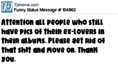 X says Attention all people who still have pics of their ex-lovers in their albums. Please get rid of that sh!t and move on. Thank you.
