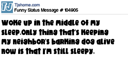 X says Woke up in the middle of my sleep.Only thing that's keeping my neighbor's barking dog alive now is that I'm still sleepy.