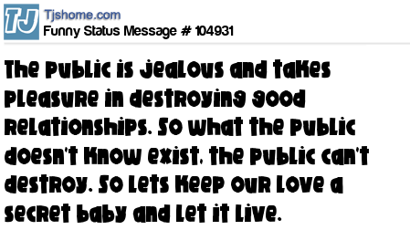 X says The public is jealous and takes pleasure in destroying good relationships. So what the public doesn't know exist, the public can't destroy. So lets keep our love a secret baby and let it live.