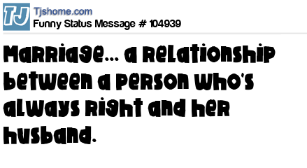 - # 183093 Marriage is a relationship where one person is always right and the other is the husband.