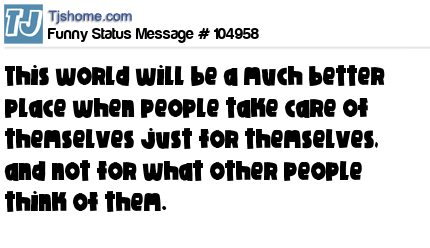 X says This world will be a much better place when people take care of themselves just for themselves, and not for what other people think of them.