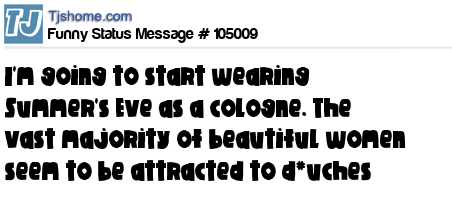 - # 193582 I’m going to start wearing Summer’s Eve as a cologne. The vast majority of beautiful women seem to be attracted to doouches.