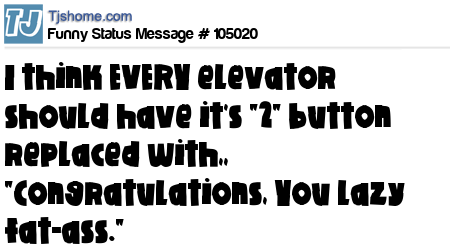 X I think EVERY elevator should have it's "2" button replaced with,, "Congratulations, You lazy fat-ass."