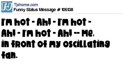 X I'm hot - Ah! - I'm hot - Ah! - I'm hot - Ah! -- Me, in front of my oscillating fan.