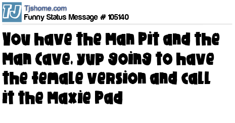 - # 105160 Men have "The Man Cave", but, when polled what the female version should be called the #1 answer was "The Maxie Pad" with "The Kitchen" and "The Laundry Room" coming in 2nd and 3rd respectively