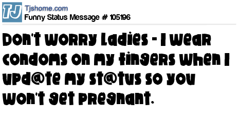 X says Don't worry ladies - I wear condoms on my fingers when I upd@te my st@tus so you won't get pregnant.