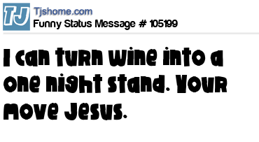 - # 161975 Last night I turned wine into vomit. Your move, Jesus.