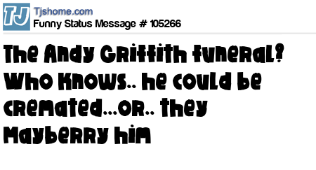 X The Andy Griffith funeral? Who knows.. he could be cremated...or.. they Mayberry him