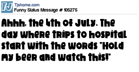 X says Ahhh, the 4th of July. The day where trips to hospital start with the words "Hold my beer and watch this!"