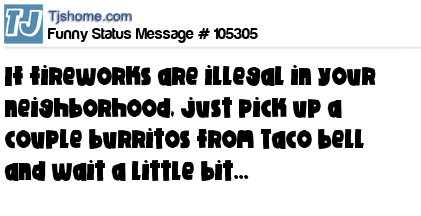 X says If fireworks are illegal in your neighborhood, just pick up a couple burritos from Taco bell and wait a little bit...