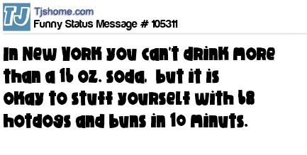 X In New York you can't drink more than a 16 oz. soda, but it is okay to stuff yourself with 68 hotdogs and buns in 10 minuts.