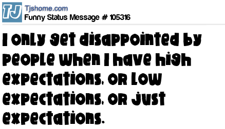X says I only get disappointed by people when I have high expectations, or low expectations, or just expectations.