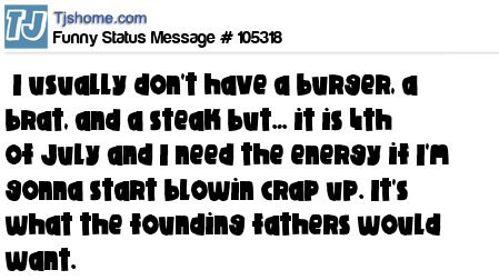 - # 57302 When's it gonna be the 4th of July? I feel like blowin somethin' up and not gettin' arrested.