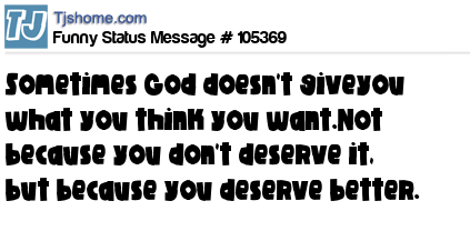 X says Sometimes God doesn't giveyou what you think you want.Not because you don't deserve it, but because you deserve better.