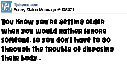 X says You know you're getting older when you would rather ignore someone, so you don't have to go through the trouble of disposing their body...