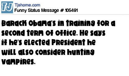 X Barack Obama's in training for a second term of office. He says if he's elected President he will also consider hunting vampires.