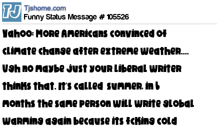 X is Yahoo: More Americans convinced of climate change after extreme weather.... Ugh no maybe just your liberal writer thinks that. It's called summer, in 6 months the same person will write global warming again because its fcking cold out.