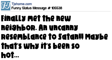 X  Finally met the new neighbor. An uncanny resemblance to Satan!! Maybe that's why it's been so hot...