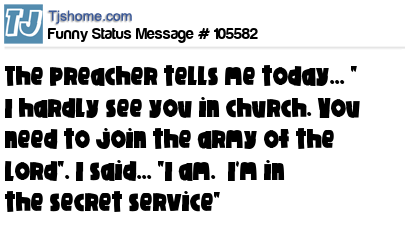X  The preacher tells me today... " I hardly see you in church. You need to join the army of the Lord". I said... "I am.  I'm in the secret service"