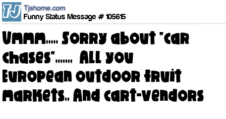 X Ummm,,,,, Sorry about "car chases",,,,,,, ALL you European outdoor fruit markets,, And cart-vendors