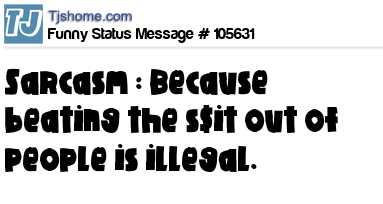 X is Sarcasm : Because beating the s$it out of people is illegal.