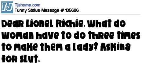 X says Dear Lionel Richie, what do woman have to do three times to make them a lady? Asking for slut.