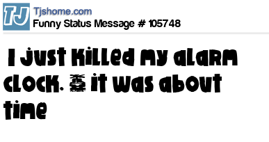 - # 18774 Just had a fight with my alarm clock. It wanted me to wake up, I disagreed. Things got violent. Now the alarm clock is broken and I'm wide awake. Not sure who won, though.