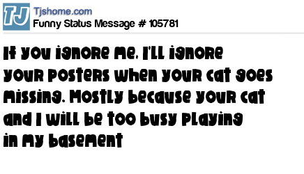 X says If you ignore me, I'll ignore your posters when your cat goes missing. Mostly because your cat and I will be too busy playing in my basement