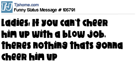 X says Ladies; If you can't cheer him up with a bl0w job, theres nothing thats gonna cheer him up