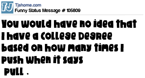 X You would have no idea that I have a College Degree based on how many times I push when it says “pull”.