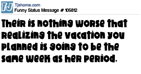 X is Their is nothing worse that realizing the vacation you planned is going to be the same week as her period.
