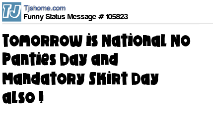 X is Tomorrow is National No Panties Day and Mandatory Skirt Day also !