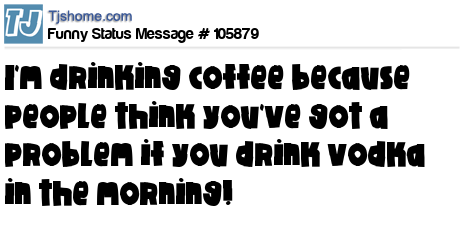 - # 207549 I’m drinking coffee right now because people think you’ve got a problem if you drink vodka on a Saturday morning.