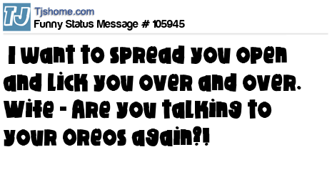 X I want to spread you open and lick you over and over. Wife - Are you talking to your Oreos again?!
