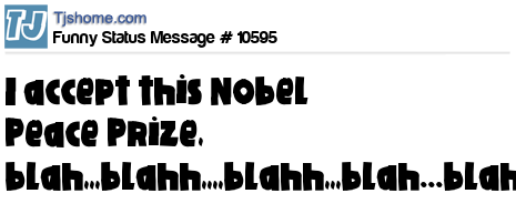 X I accept this Nobel Peace Prize, blah,,,blahh,,,,blahh,,,blah...blahhh.....................