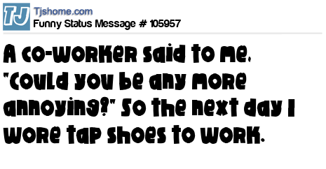 X says A co-worker said to me, "Could you be any more annoying?" So the next day I wore tap shoes to work.