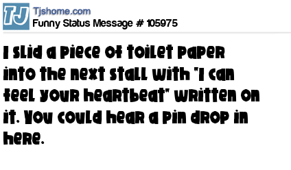 X says I slid a piece of toilet paper into the next stall with "I can feel your heartbeat" written on it. You could hear a pin drop in here.