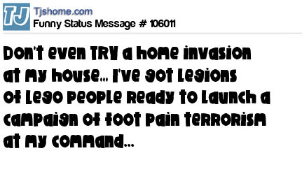X Don't even TRY a home invasion at my house,,, I've got legions of Lego people ready to launch a campaign of foot pain terrorism at my command...