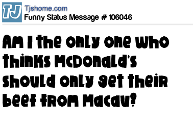 X is Am I the only one who thinks McDonald's should only get their beef from Macau?