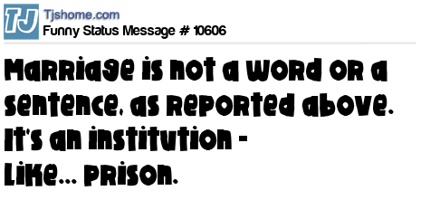 - # 64242 Marriage is not a word, its a sentence, a life sentence.