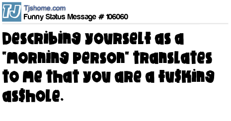 X is Describing yourself as a "morning person" translates to me that you are a fu$king as$hole.