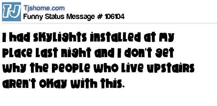 X I had skylights installed at my place last night and I don't get why the people who live upstairs aren't okay with this.