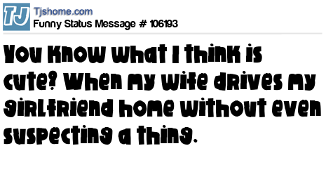 X says You know what I think is cute? When my wife drives my girlfriend home without even suspecting a thing.