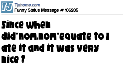 X says since when did"nom,nom"equate to I ate it and it was very nice ?