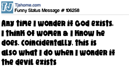 X says Any time I wonder if God exists, I think of women & I know he does. Coincidentally, this is also what I do when I wonder if the devil exists